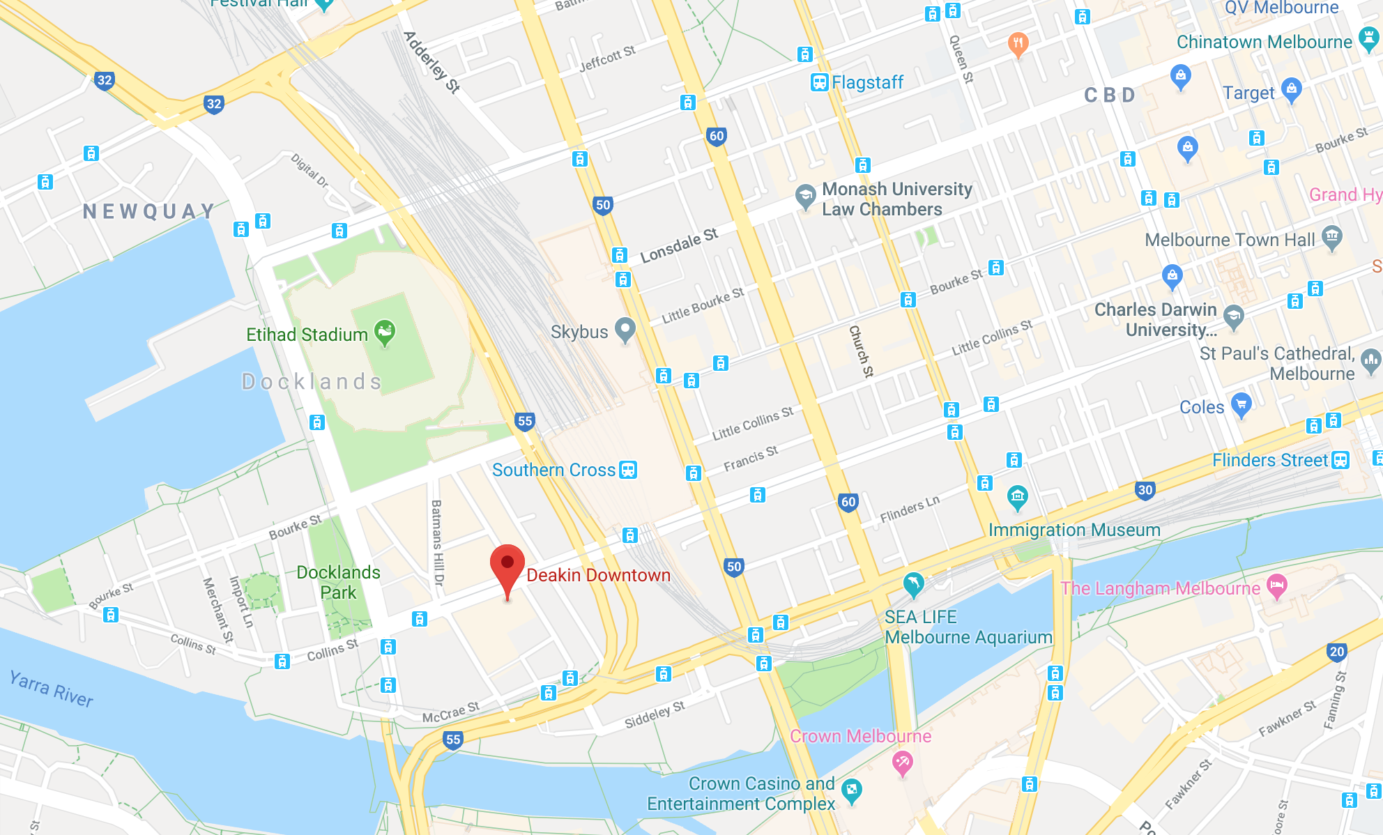 Deakin Downtown is located on level 12 of Tower 2 and access is via an escalator then lifts.